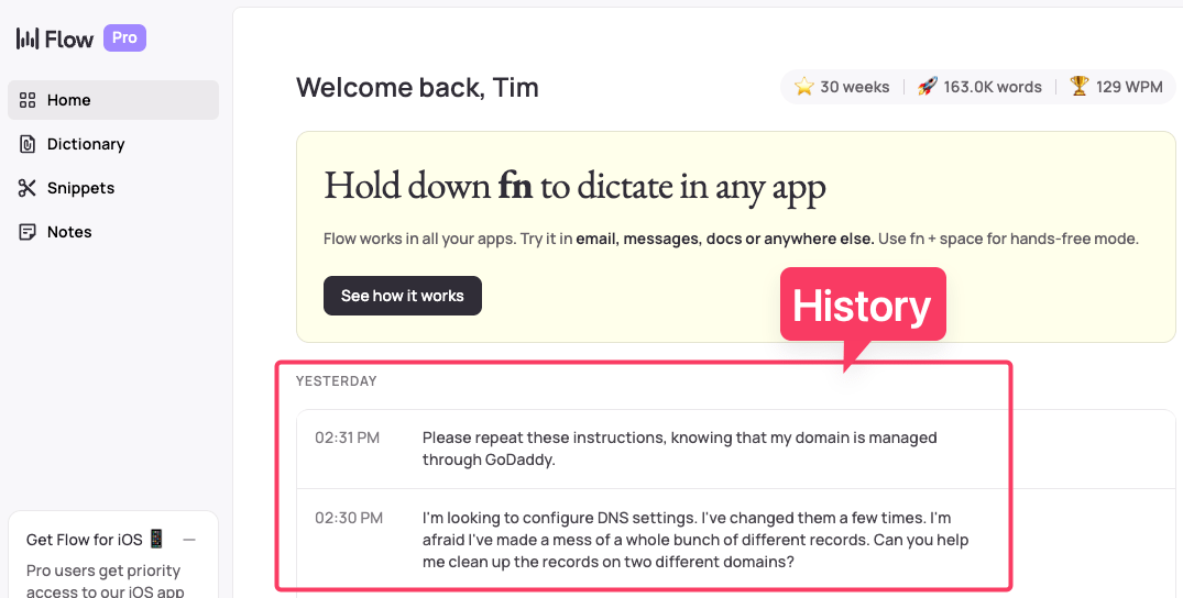 Wispr Flow catches all of this and continuously updates itself so it’s dynamically getting better, faster, more accurate for you. AMAZING.